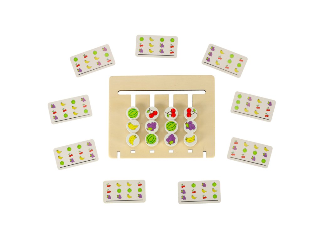 Igra sestoji iz urejanja kombinacij sadja ali barv glede na vzorce, prikazane na podpornih karticah.