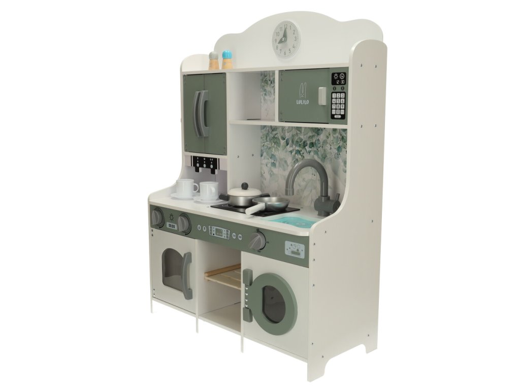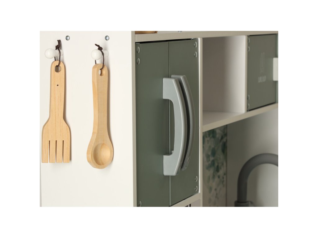 Zanimiv dizajn in umirjene barve kuhinje omogočajo, da se prilega vsaki otroški sobi. Ko je začasno ne uporabljate, bo tudi čudovit okras!