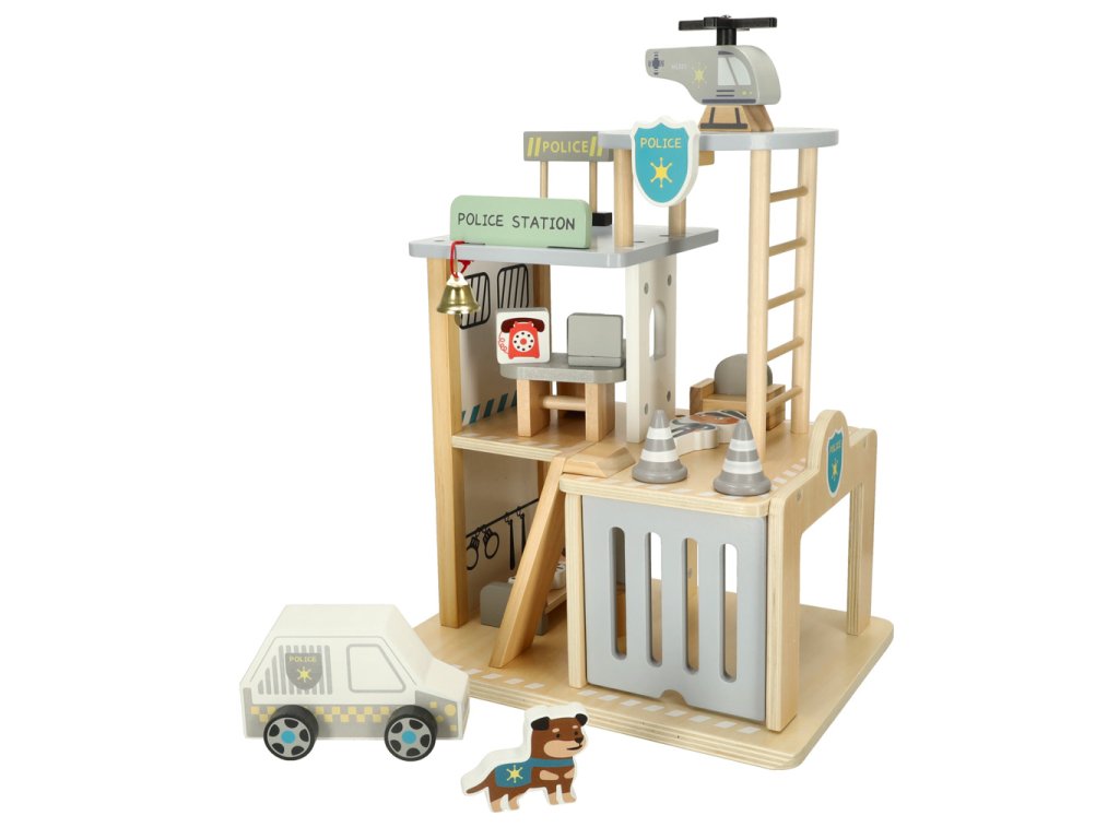 popolnoma iz lesa - policijska postaja in dodatki so izdelani iz kakovostnega lesa, da bi vaš otrok lahko čim dlje užival v igračah