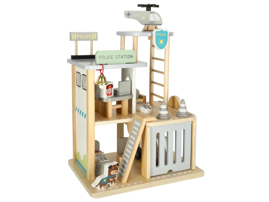 Policijska postaja in vsi dodatki (figuri, vozila in pohištvo) so izdelani iz gladko brušenega lesa, tako da ste lahko prepričani, da bo igrača vašega otroka zabavala dolga leta.