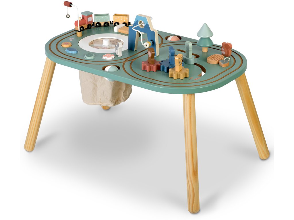 - Pod pokrovom z mlinčkom je tkana vrečka iz naravnega bombaža, kamor lahko pospravite vse igrače po končani igri.