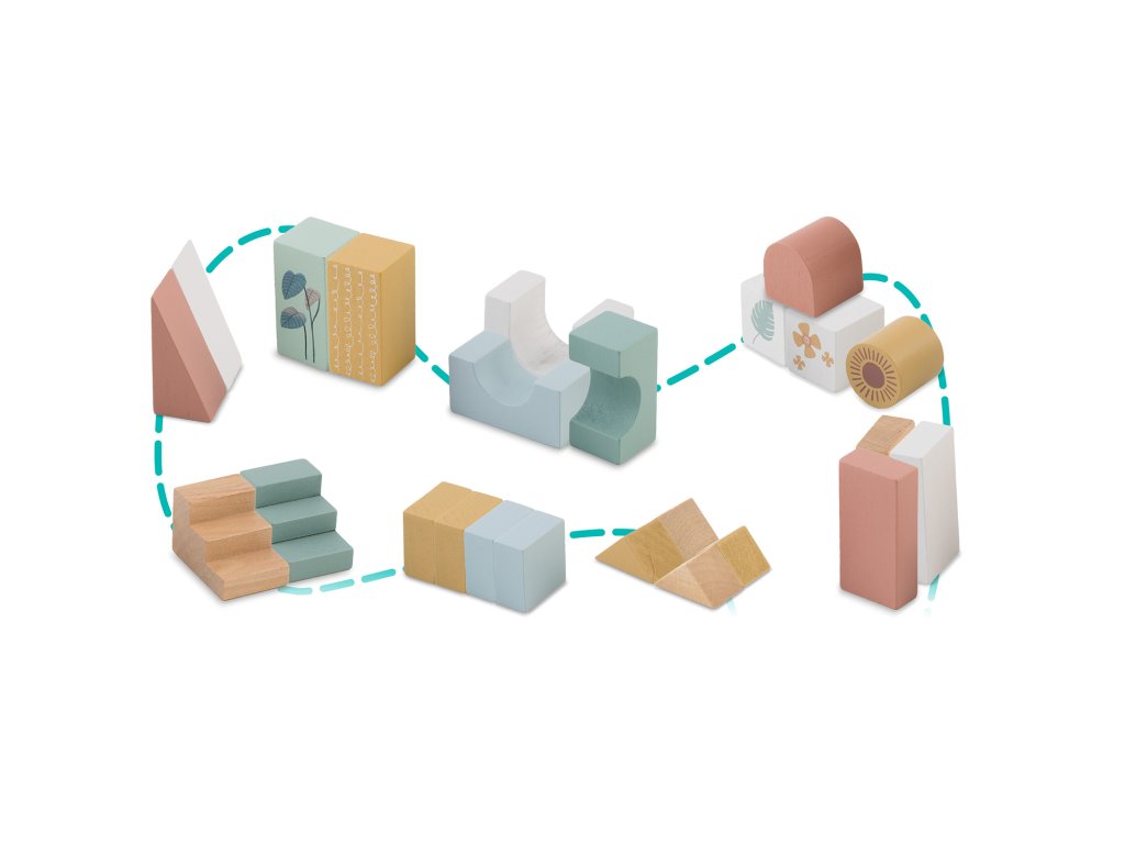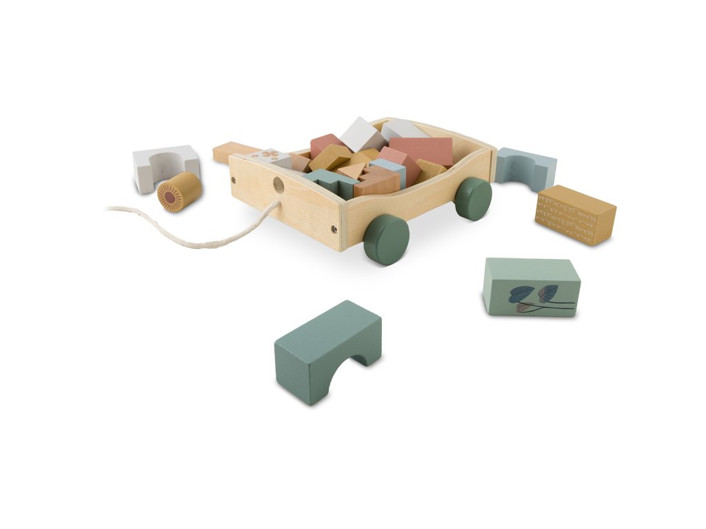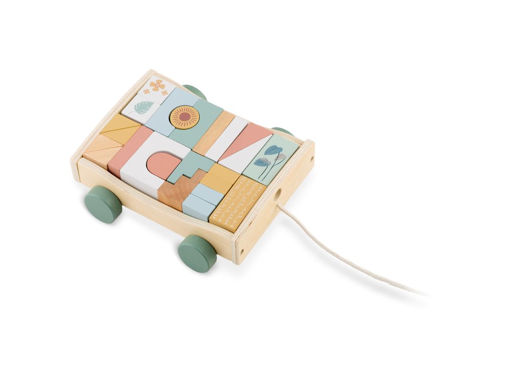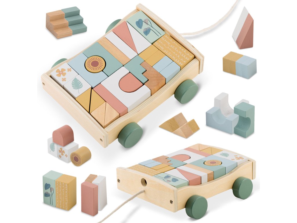 - Voziček z bloki združuje izobraževalne elemente s fizično aktivnostjo, spodbuja otroke k ustvarjalnemu razmišljanju.
