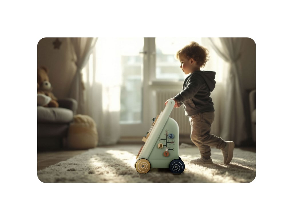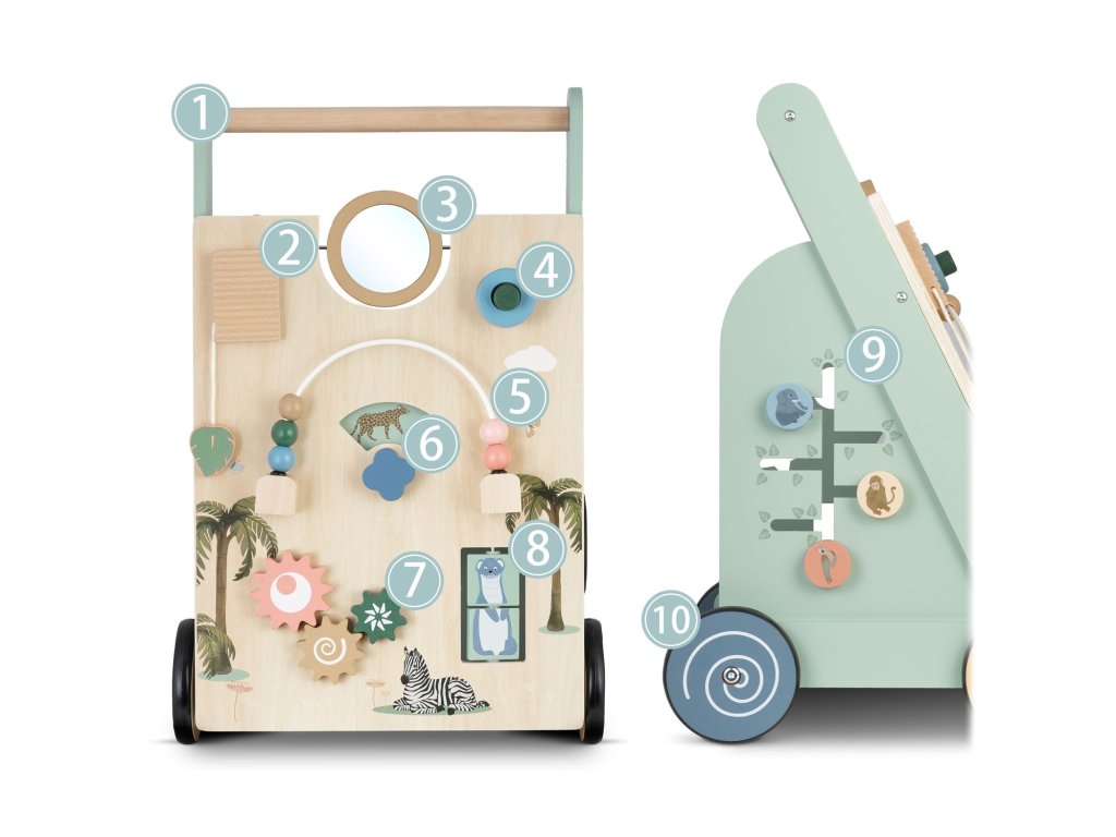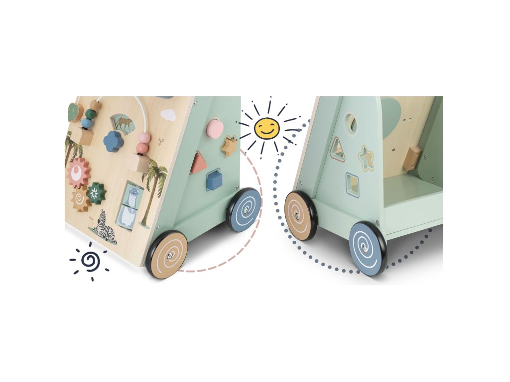- omogoča otroku enostavno premikanje igrače, s čimer spodbuja aktivno igro in razvoj hoje.