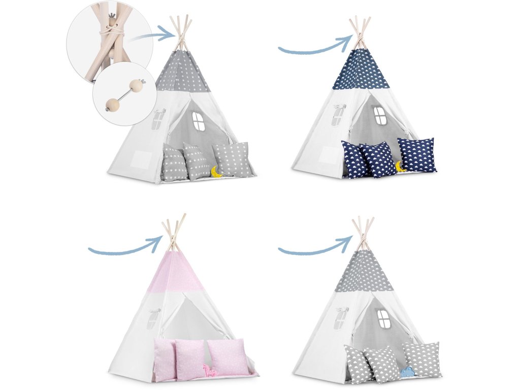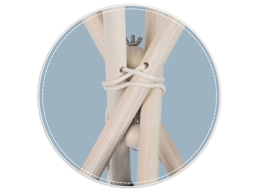 Ne z nami! Enostaven za uporabo in učinkovit stabilizator, dodan k setu, hitro reši te težave: konstrukcija šotora se takoj postavi čvrsto in varno, material pa se na njej enakomerno in lepo napne. Postavitev teepee vzame manj časa in niti živahna zabava pod tako profesionalno postavljenim šotorom ne ogroža njegove stabilnosti.