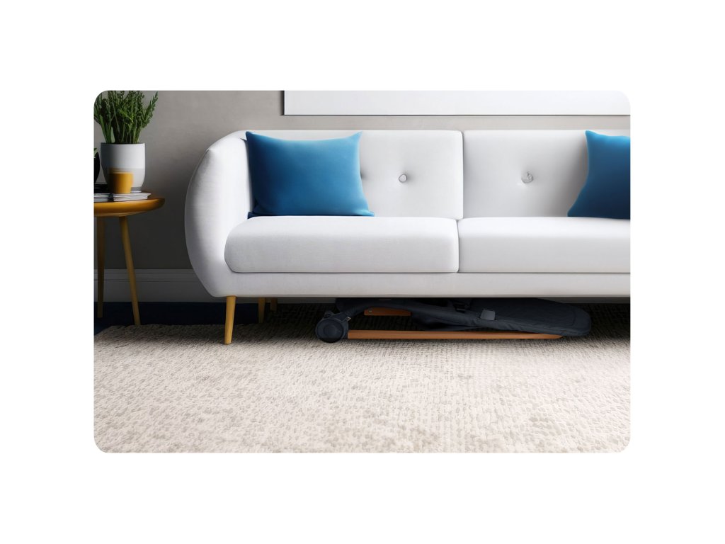 Ležalnik je mogoče zložiti na ravno, da se prihrani prostor, kar omogoča enostavno shranjevanje pod posteljo ali v omari.