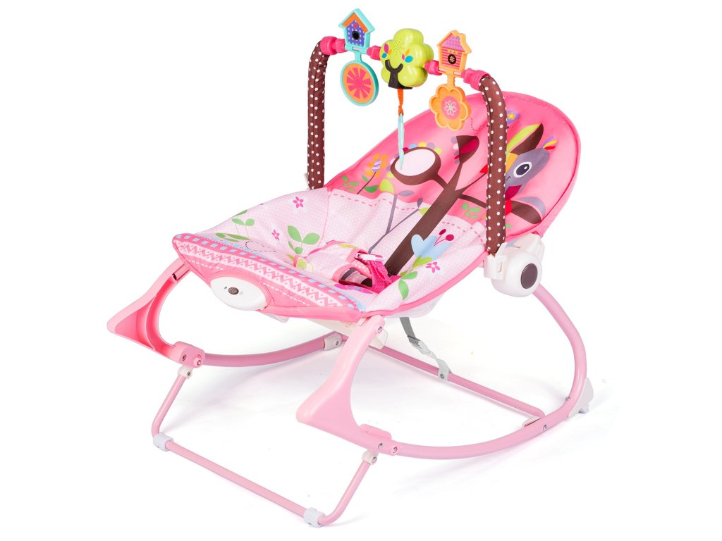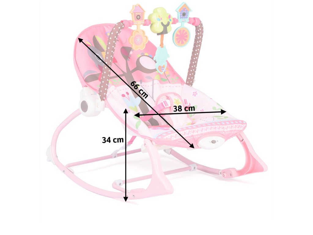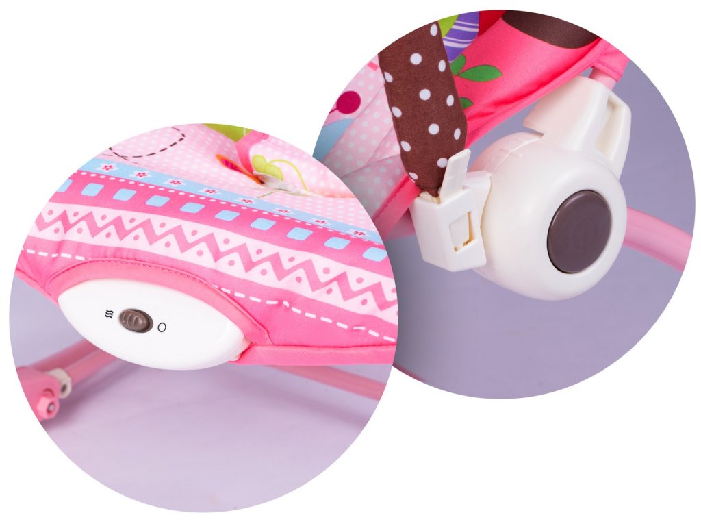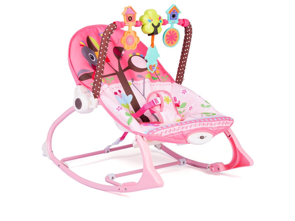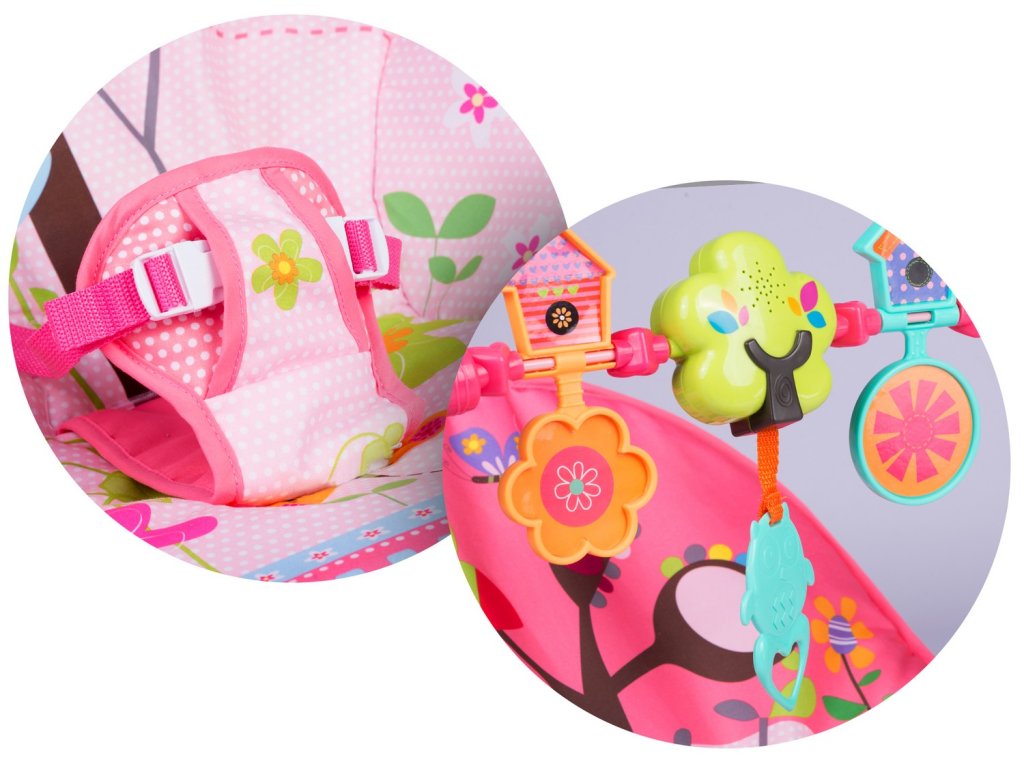 Ležalnik je opremljen z odstranljivim trakom z pritrjenimi šumečimi igračami - sovico in volkom ter ropotuljico. Le-te bodo zaposlile vaše otroke, medtem ko se boste vi sprostili. Te edinstvene igrače stimulirajo vid in razvijajo dotik.