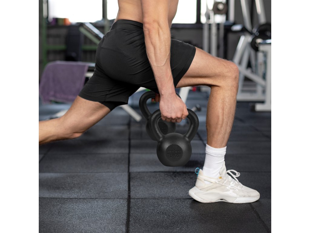 Litoželezni kettlebell Rebel Active ponuja neverjetno raznolikost treningov. Lahko izvajate tradicionalne vaje, kot so počepi in mrtvi dvigi, vendar lahko s kettlebellom tudi eksperimentirate z različnimi gibi za krepitev telesa. Je odlična pripomoček za vaje za mišice rok, hrbta, trebuha in prsnega koša.