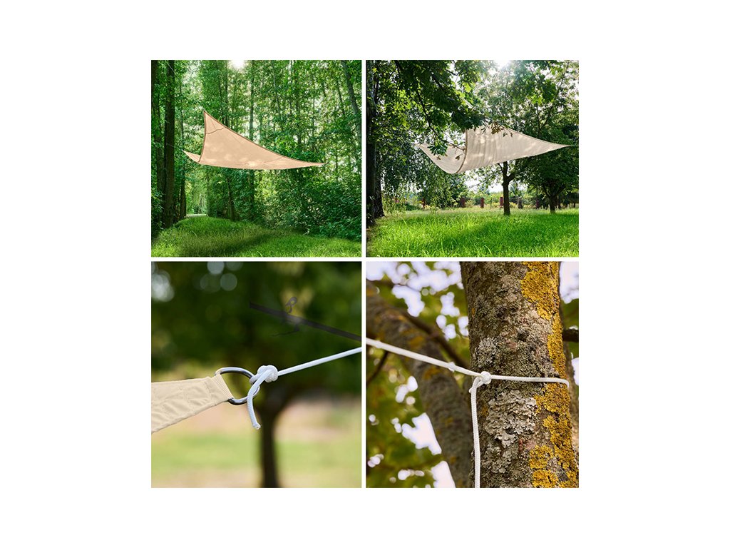 Enostavna montaža je ena največjih prednosti tega izdelka. V paketu jemontažna vrv, ki omogoča varno in trdno pritrditev. Vsaka pritrdilna točka se lahko prilagodi tako, da ustreza specifičnim pogojem - ne glede na to, ali jadro obesite med stene zgradbe, nad pergolo ali med drevesa.