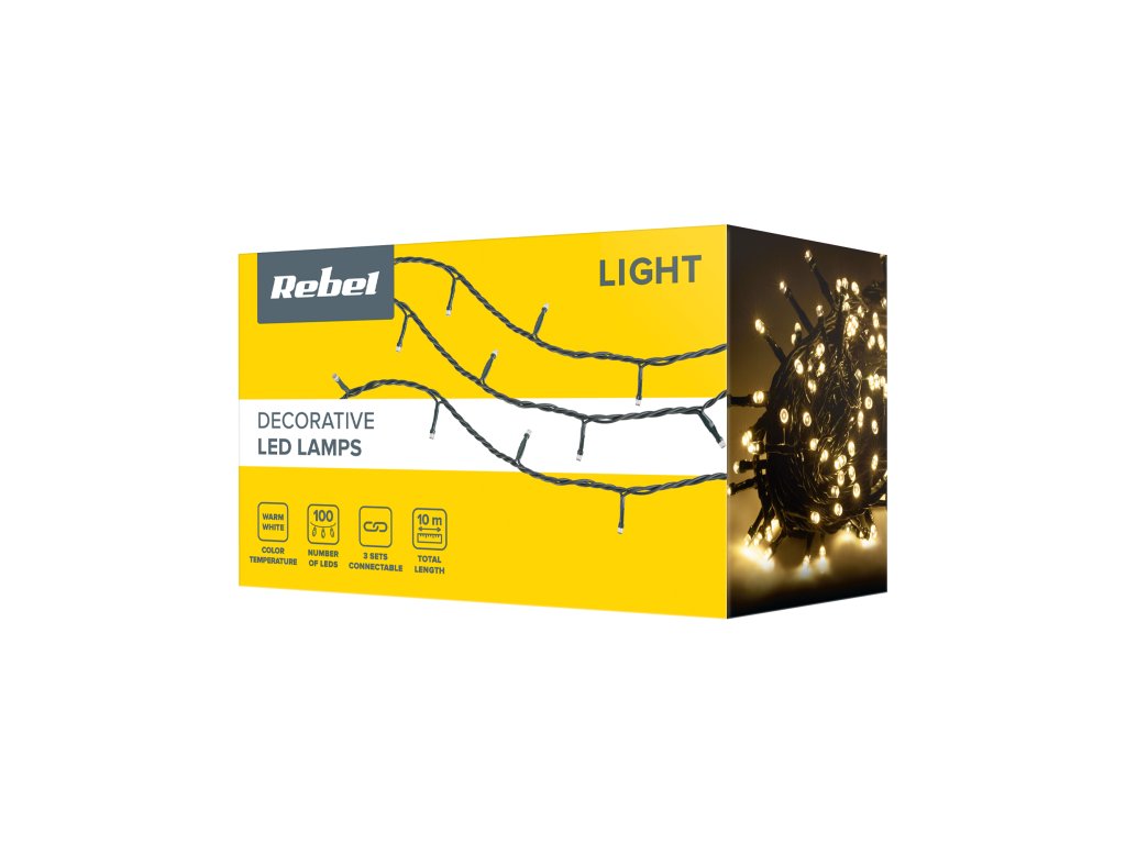LED novoletne lučke Rebel za zunanjo uporabo 10 m, toplo bele, z možnostjo spreminjanja načina osvetlitve