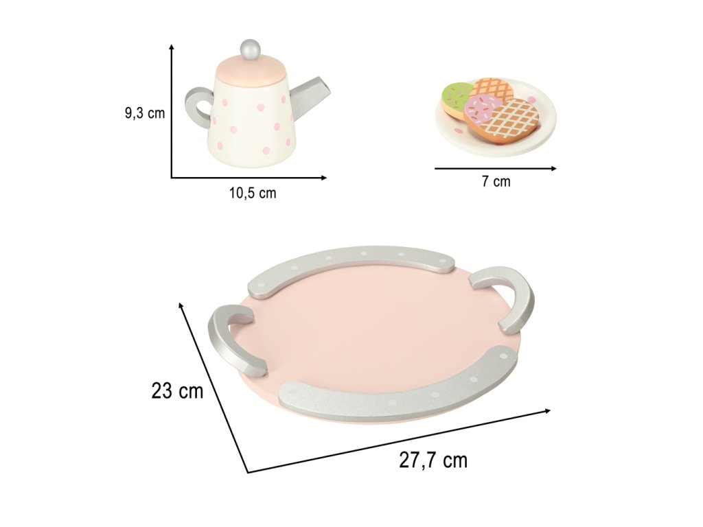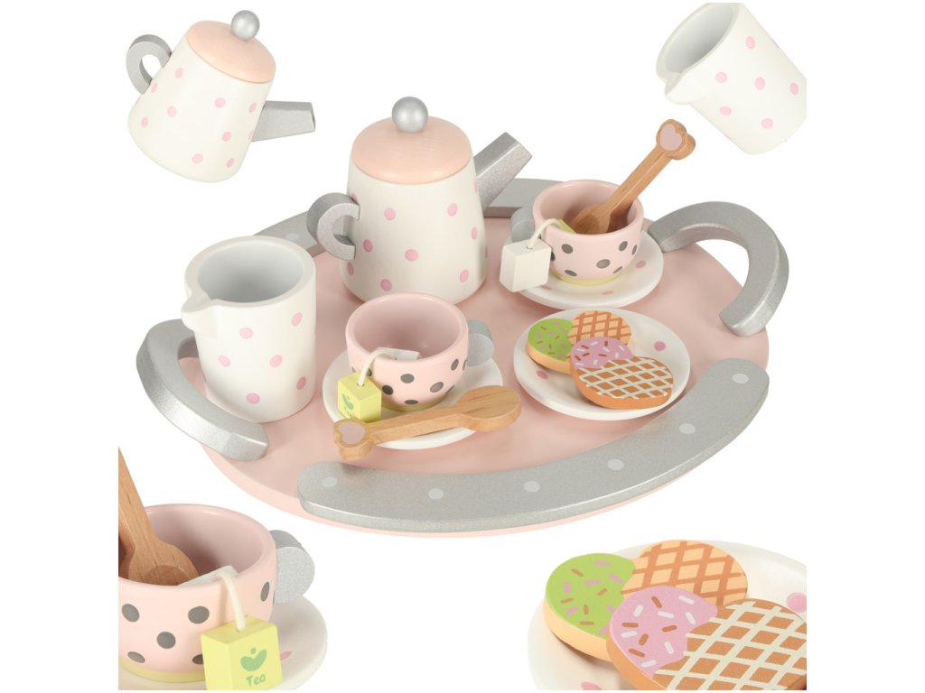 Odprite vrata v svet domišljije in ustvarjalnosti vašega otroka! Leseni set za čaj in kavo bo razveselil vsakega otroka, ki se rad igra na dom, restavracijo ali organizira zabave za svoje najljubše medvedke in punčke. Set vsebuje vse potrebne dodatke za igro vlog in posnemanje odraslih pri postrežbi toplih napitkov in dobrot. Igra s setom je odlična priložnost za pridobivanje socialnih veščin, razvoj ročnih spretnosti in gradnjo družinskih vezi.