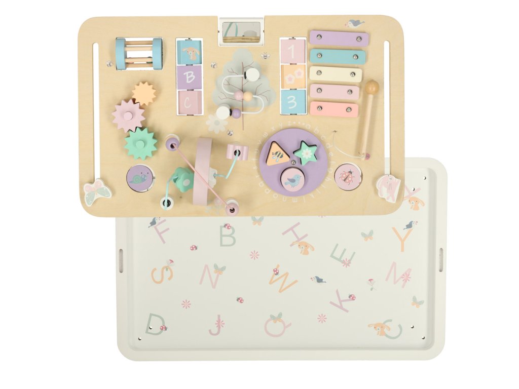 razvoj ključnih veščin - miza podpira razvoj motoričnih veščin, logičnega razmišljanja in domišljije otroka prek interaktivnih elementov
