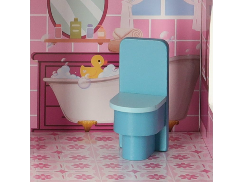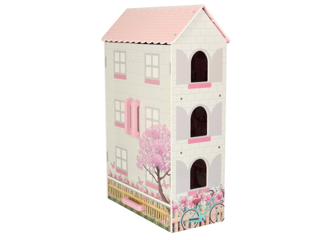 Odprta lutkovna hiša v očarljivem slogu bo ne le kraj za kreativno igro, temveč tudi okras otroške sobe. Hiša ima tri nadstropja s kuhinjo, kopalnico, spalnico, dnevno sobo in stopniščem. Vrata in predali, ki so zaklenjeni na magnet, olajšujejo vzdrževanje reda v sobi - igračami znotraj po igranju preprosto počistite.