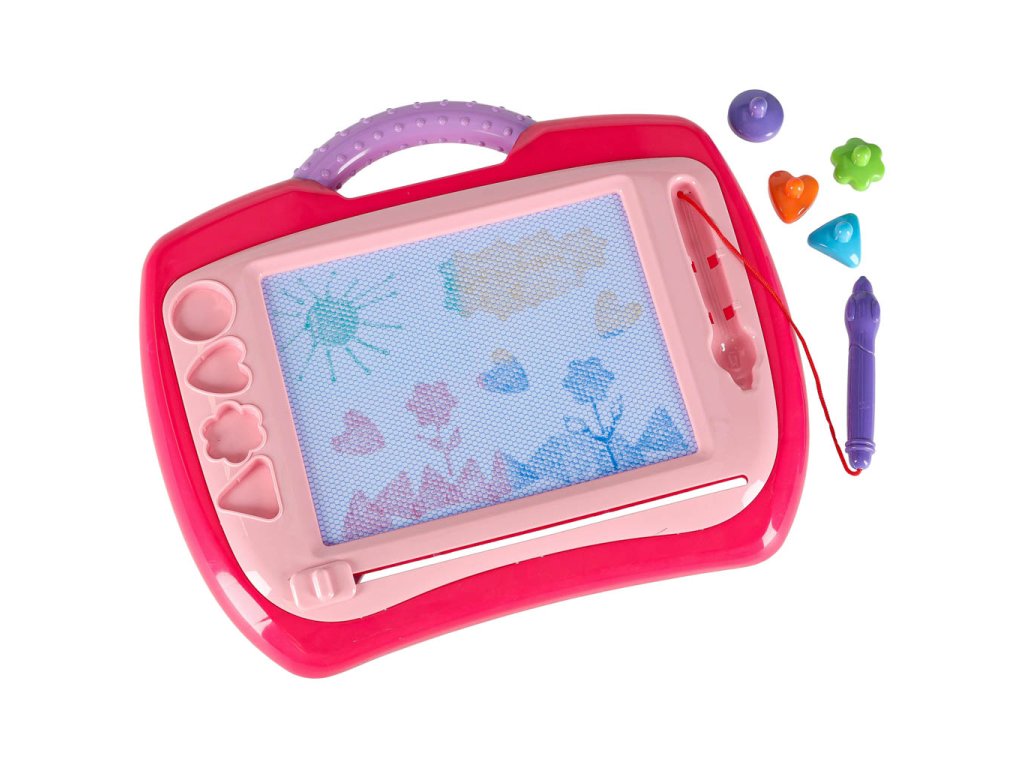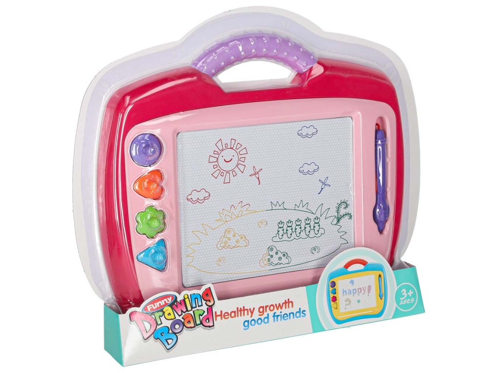 Magnetna tabla za risanje s polnilnim peresom in štampiljkami roza