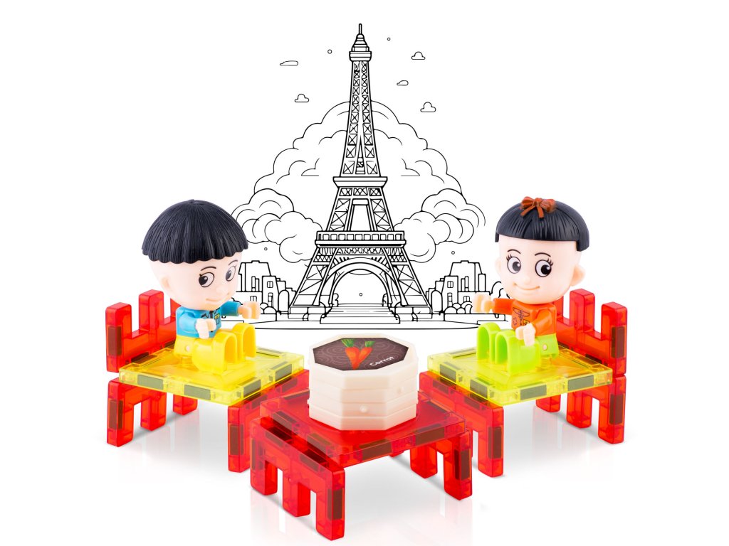 - vsebuje: gradbene kocke, nalepke, figurice,