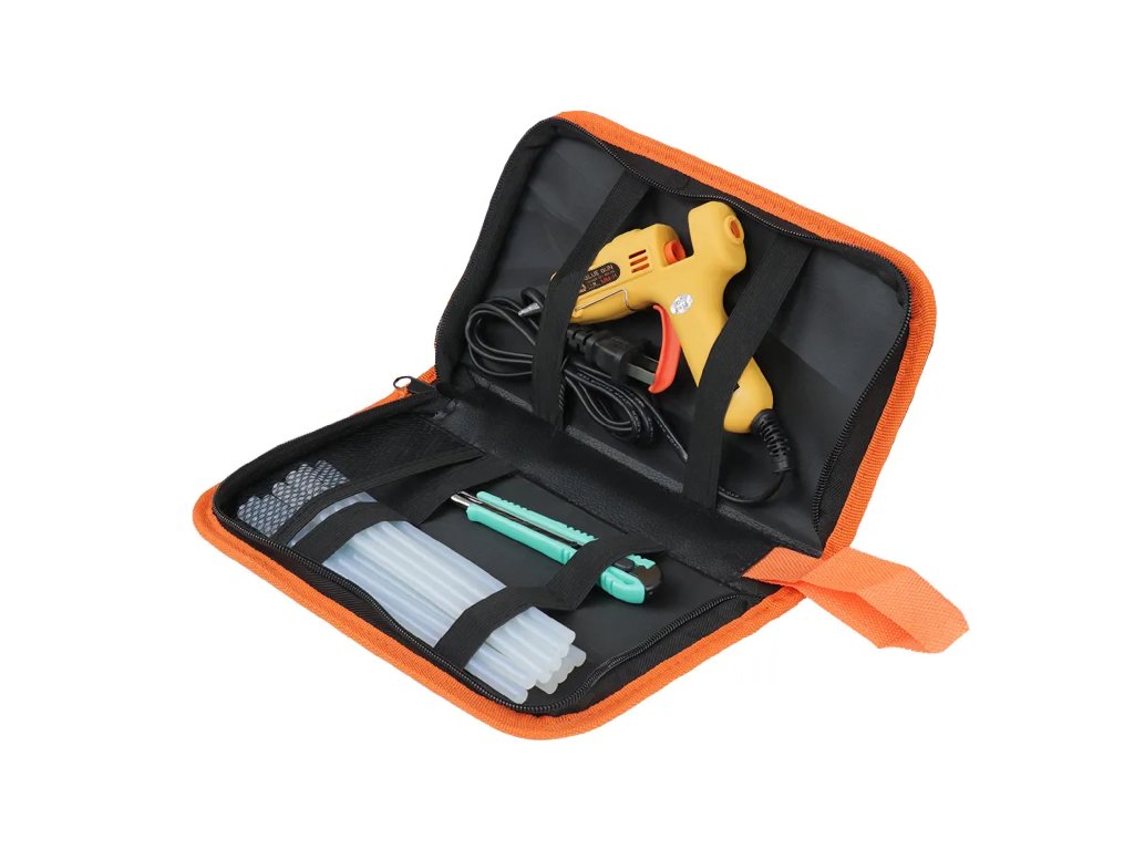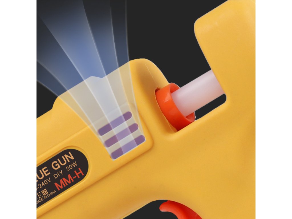 Lepilna pištola z ojačano aluminijasto glavo Za lepila 7 mm V kompletu z nožem z zamenljivimi rezili. 10 dolgih palčk univerzalnega lepila. Praktičen etui velikosti: 26x15x4 cm. Zaradi etuija je lažje vzdrževati red. Pištola ima moč 20 W, poleg tega LED diodo, ki signalizira priključitev na omrežje, in vgrajeno stikalo v ročaju. VISOKOKAKOVOSTNA LEPILKA Električno orodje, namenjeno lajšanju enostavnih popravil. Zagotovo bo našlo uporabo v vsakem gospodinjstvu. Z napravo boste hitro in zanesljivo povezali različne materiale. Lepilka ogreva vložke lepila in omogoča zelo natančno nanašanje na želenem mestu. Materiali, povezani z lepilom pri visoki temperaturi, se odlikujejo z dolgotrajnimi rezultati. Zaradi teh lastnosti je izdelek odličen za enostavna in hitra popravila. Napravo lahko uporabite za povezovanje različnih materialov, kot so karton, plastika, papir, leseni ali kovinski elementi (po predhodnem segrevanju lepila). Tehnični podatki: Napajalna napetost: AC 110 - 230 V Moč: 20 W Premer lepila: 7 mm Čas segrevanja: 4 min Premer odprtine šobe: 2 mm Stikalo: Da ON/OFF Dolžina kabla: 1 m Etui velikosti: 26x15x4 cm Zalog kov: Da 10 kosov Nož z zamenljivimi rezili: DaAdditional parameters