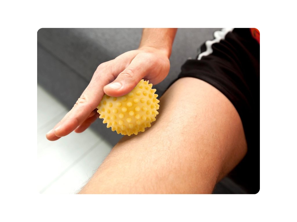 Sproščanje napetih mišic: Konice na žogi pomagajo pri masaži mišic, sproščajo napetost in bolečino, še posebej po intenzivni vadbi.