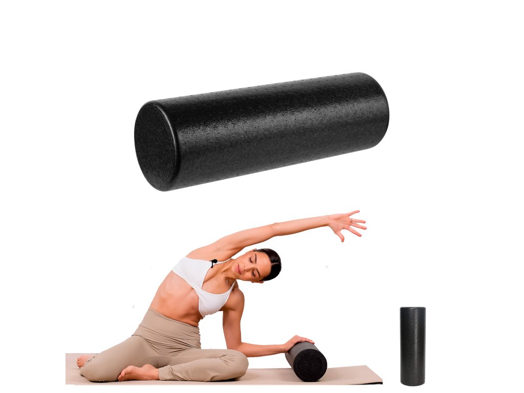 Masažni valjček, valj 15x45cm, črna barva, material EPP, REBEL ACTIVE