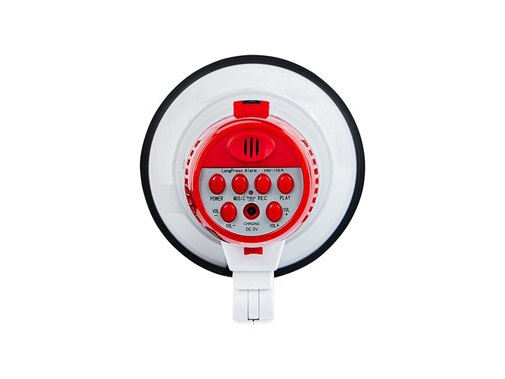 Zelo glasen megafon, 108dB nam omogoča prednost našega glasu na protestih, pohodih ali romanjih. Ima tudi funkcijo sirene, ki jo lahko vključimo s stikalom (podobno kot policijska sirena).