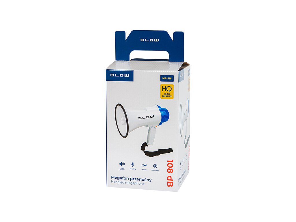 Megafon je zelo glasen, 108dB nam omogoča prednost našega glasu na protestih, pohodih ali romanjih. Ima tudi funkcijo sirene, ki jo lahko vključimo s stikalom (kot policijska sirena).