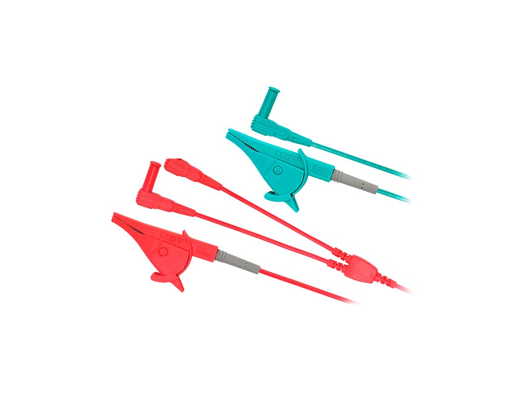 Vsak izmed kablov je zaključen s priključkom tipa krokodil, kar zagotavlja zanesljivo in stabilno povezavo z merilnikom. Komplet izpolnjuje varnostne standarde CAT III 1000 V in CAT IV 600 V pri toku do 10 A, kar zagotavlja zaščito med delom v težkih pogojih, kot so industrijske instalacije ali električne razdelilne omarice.