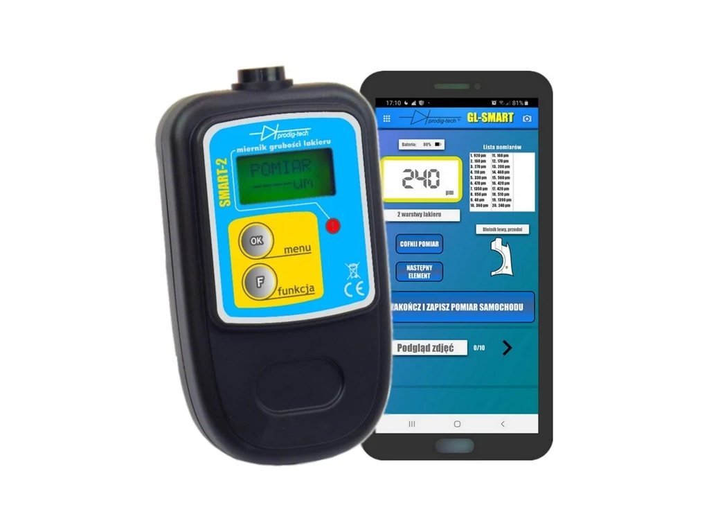 ponujajo možnost povezave s pametnim telefonom prek Bluetootha. Z uporabo aplikacije GL-SMART lahko izkoristite številne dodatne funkcije, ki niso na voljo pri tradicionalnih merilnikih debeline laka. Te funkcije lahko vključujejo beleženje in analizo izmerjenih podatkov, izvoz podatkov za nadaljnjo obdelavo, vizualizacijo rezultatov in še veliko več.Aplikacija GL-SMART