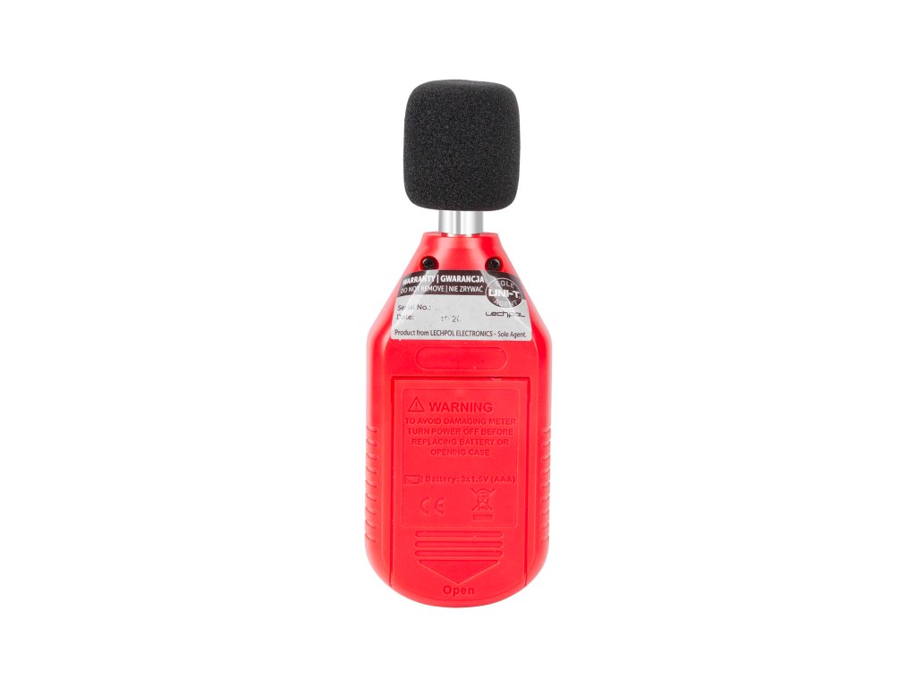 UT353 je opremljen s kapacitivnim mikrofonom premera 1/2 palca, ki omogoča natančno sprejemanje zvokov. Napravo poganjajo tri baterije 1,5 V (R03), kar omogoča dolgotrajno delovanje brez pogoste potrebe po zamenjavi baterij. Merilnik ima kompaktne dimenzije (150 x 52 x 27 mm) in nizko težo (116 g), kar ga naredi priročnega za prenašanje in enostavnega za uporabo. V kompletu z napravo so baterije in zaščita proti vetru (penasta), ki ščiti mikrofon pred zunanjimi motnjami.