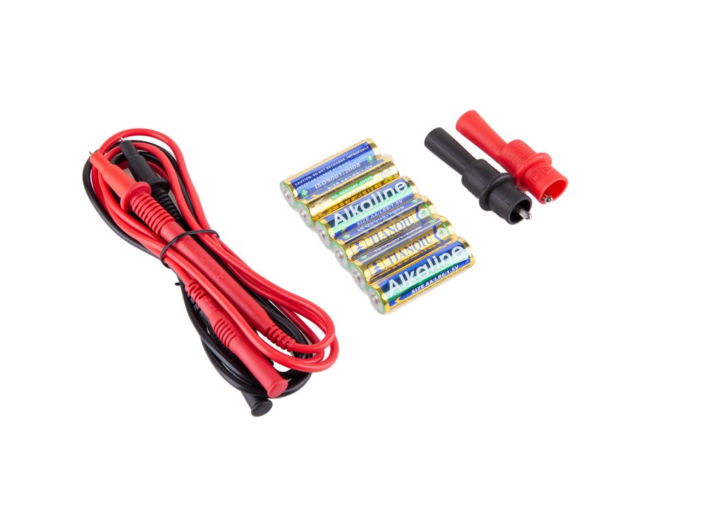 Vključen komplet: Baterije, merilni kabli, krokodiljevi sponki, etui