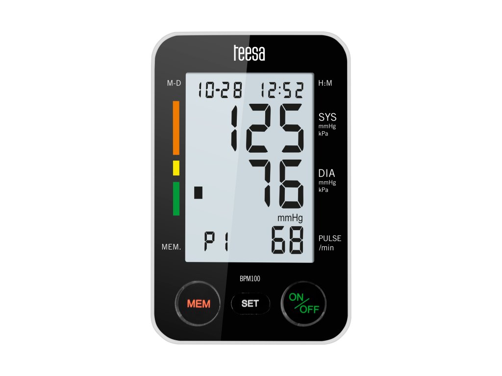 Teesa BPM 100 vam bo zaradi svoje natančnosti omogočila bolj samozavesten občutek ali pa pravočasno sprejemanje preventivnih ukrepov! Meritev vašega tlaka z aparatom je skladna z normami določenimi s strani WHO. Za še boljšo kontrolo rezultatov je naprava opremljena s funkcijo pomnjenja zadnjih 90 meritev, opravljenih za dva uporabnika.