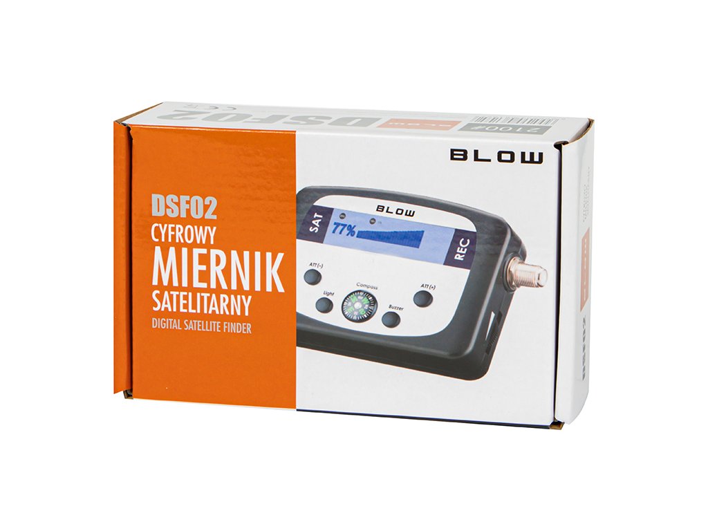 Digitalni merilnik satelitskega signala BLOW DSF02 je namenjen za nastavitev/korekcijo položaja satelitskih anten. Zaradi mikroprocesorskega upravljanja merilnik omogoča natančen prikaz ravni satelitskega signala, zaradi česar je zelo uporaben pri nastavitvi satelitskih anten. Merilnik je opremljen z berljivim LCD zaslonom s funkcijo osvetlitve ozadja, kar omogoča uporabo v vseh pogojih.