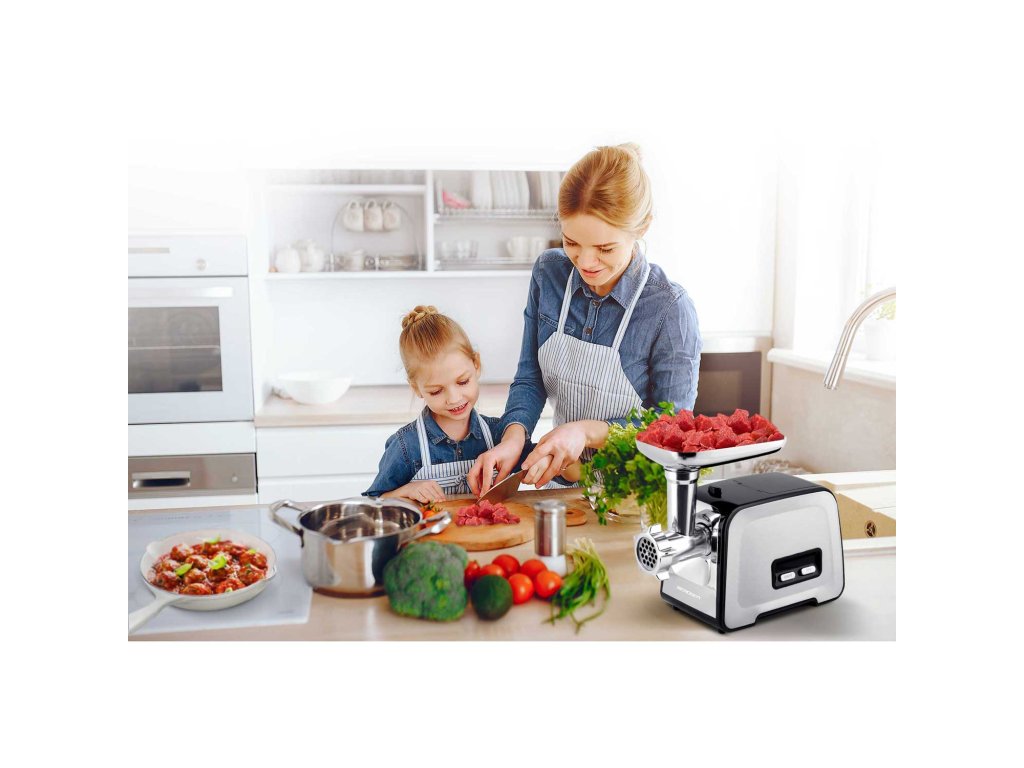 Naprava je opremljena z mesarskim nastavkom, orientalskim nastavkom in močnim polžem, ki hrano temeljito zmelje.