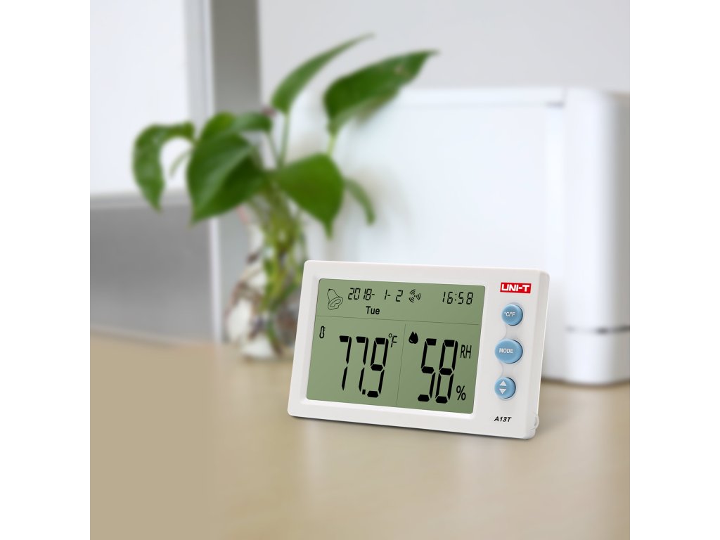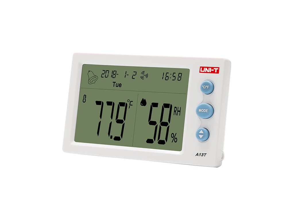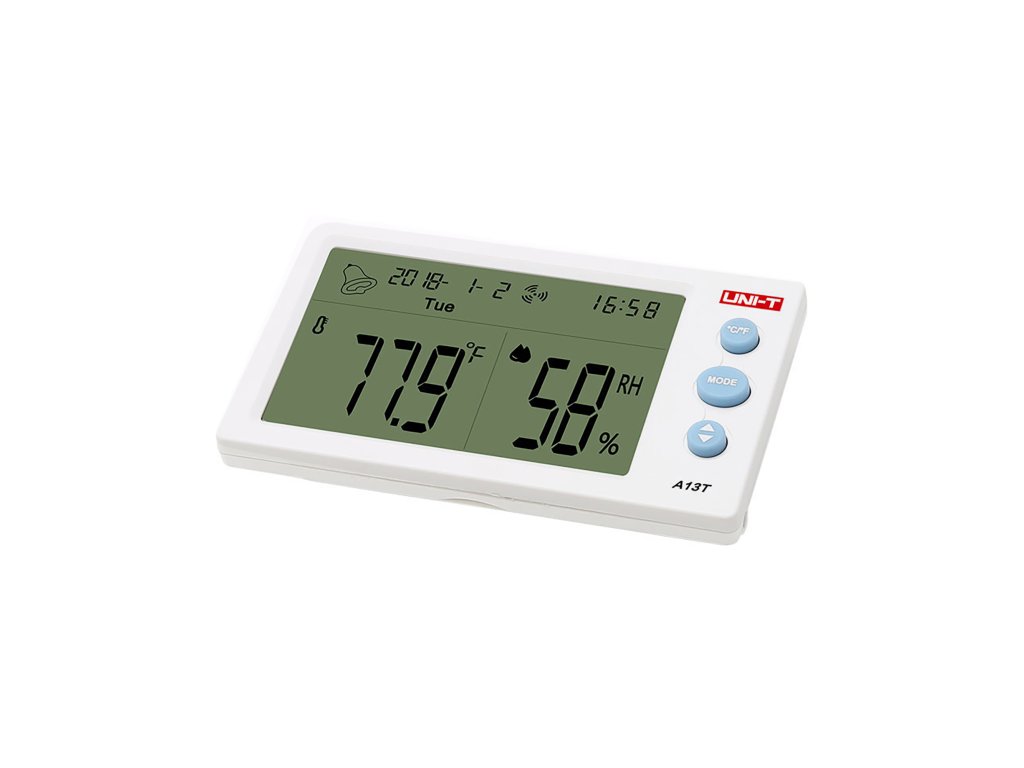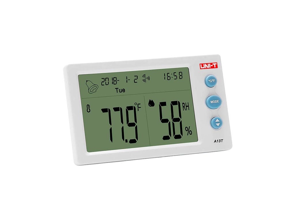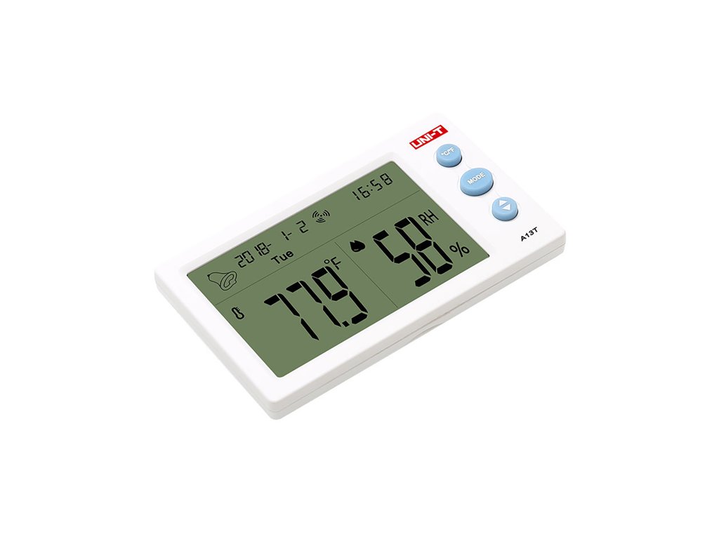 Vremenska postaja Uni-T A13T je kompaktna in funkcionalna naprava, ki zagotavlja natančno merjenje temperature in vlažnosti zraka. Zaradi različnih funkcij in enostavne uporabe se odlično obnese v vsakem domu, pisarni ali delavnici.