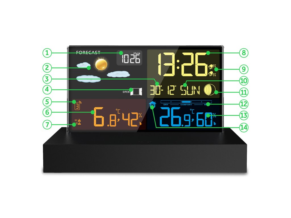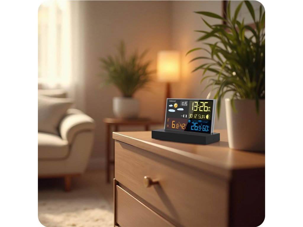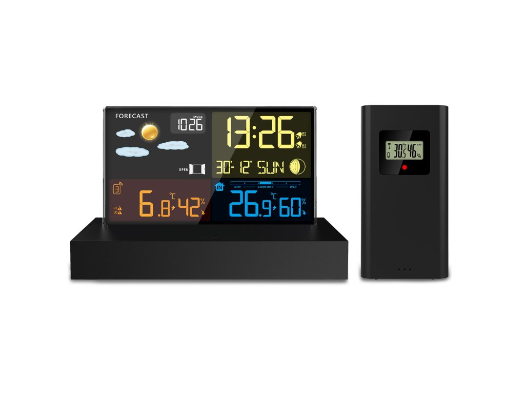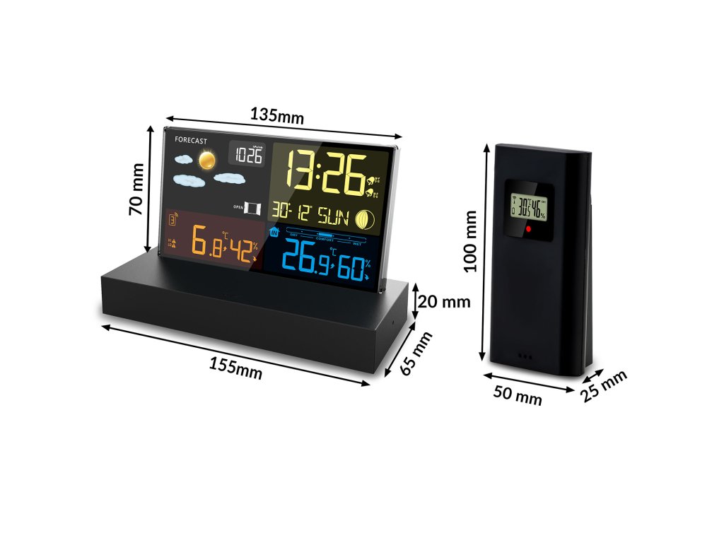 - Vremenska postaja z integriranim higrometrom omogoča nadzor in vzdrževanje ustreznih mikroklimatskih pogojev v prostorih.