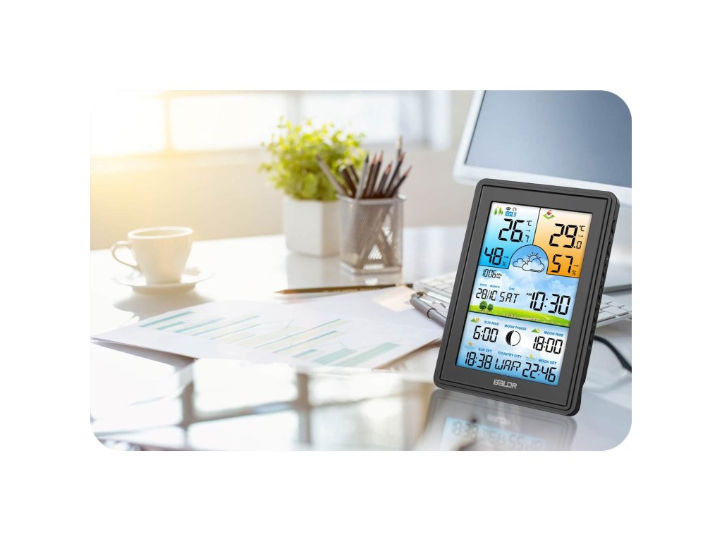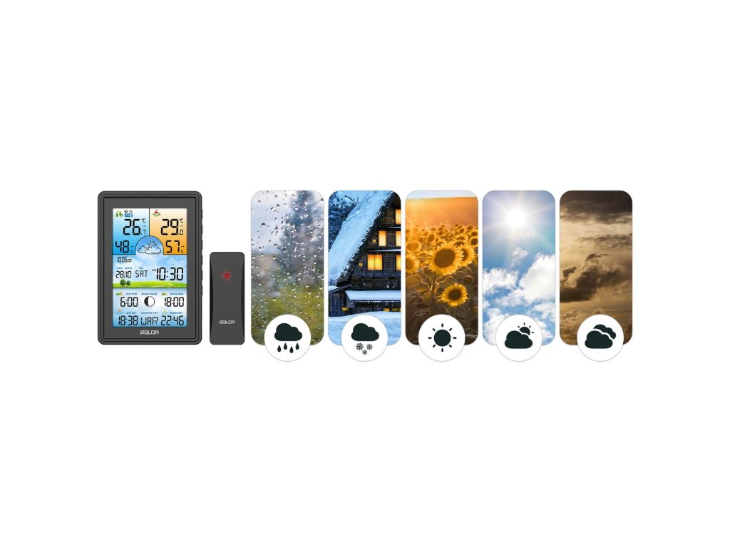 - Vremenska postaja z vgrajenim higrometrom vam omogoča nadzor in vzdrževanje ustrezne mikroklime v notranjosti ali zunanjosti.
