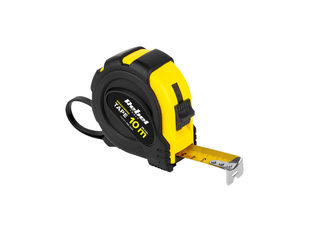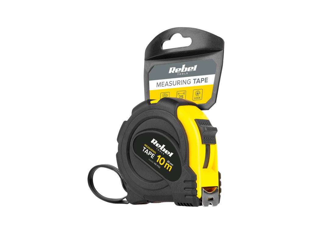 Merilni trak Rebel z dosegom 10 m je izdelan iz jekla, ki v kombinaciji z robustnim plastičnim ohišjem zagotavlja dolgo življenjsko dobo in odpornost na udarce in druge poškodbe. Merilna kljuka in blokirni gumb skupaj z veliko širino naprave (25 mm) olajšajo natančno merjenje velikih razdalij brez opore, tako da boste merjenje obvladali sami skoraj v vsaki situaciji.