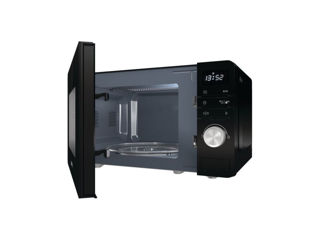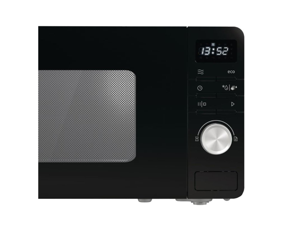 Vrsta: Prostostoječa Moč: 800 W Nadzor: elektronski Prostornina: 20 l Premer krožnika: 27 cm Funkcija pametnega zaslona Samodejni programi Postopno povečanje moči segrevanja s funkcijo kuhanja na več ravneh Gumb 30 s Plus Zaklepanje vrat Časovnik Zaščita pred otroki Dimenzije (ŠxVxG): 45,1 x 25,7 x 34,3 cm Teža: 10,8 kg Smer odpiranja: levo Barva: črnaVrsta: Prostostoječa