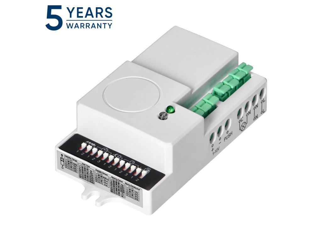 - Stopnja zaščite IP20: Mikrovalovni senzor gibanja z regulacijo, IP20 je primeren za uporabo v suhem okolju in je zasnovan tako, da prenese vsakodnevno obrabo v notranjih prostorih.