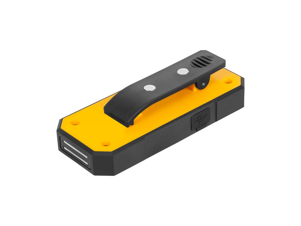 Svetilka ima zaponko in magnetne nosilce, kar olajša njeno pritrditev na različna mesta in položaje, pri čemer omogoča proste roke med delom. Kompaktne dimenzije 117 x 46 x 27 mm in nizka teža 107 g omogočajo, da je svetilka enostavna za prenašanje in shranjevanje.