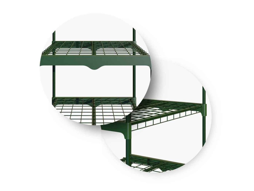 Prostor pod policami lahko uporabite za dodatke – lonci za rože, grablje in podobno.