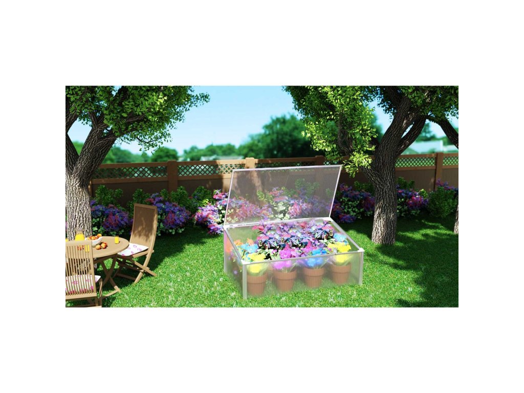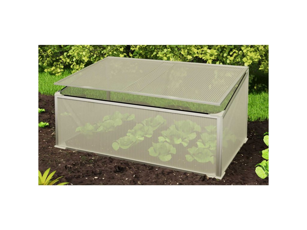 PC material s težo do 500 g/m2 je odporen na UV sevanje in dež . Minirastlinjak ima tudi nagibno okno, ki zagotavlja dobro kroženje zraka.