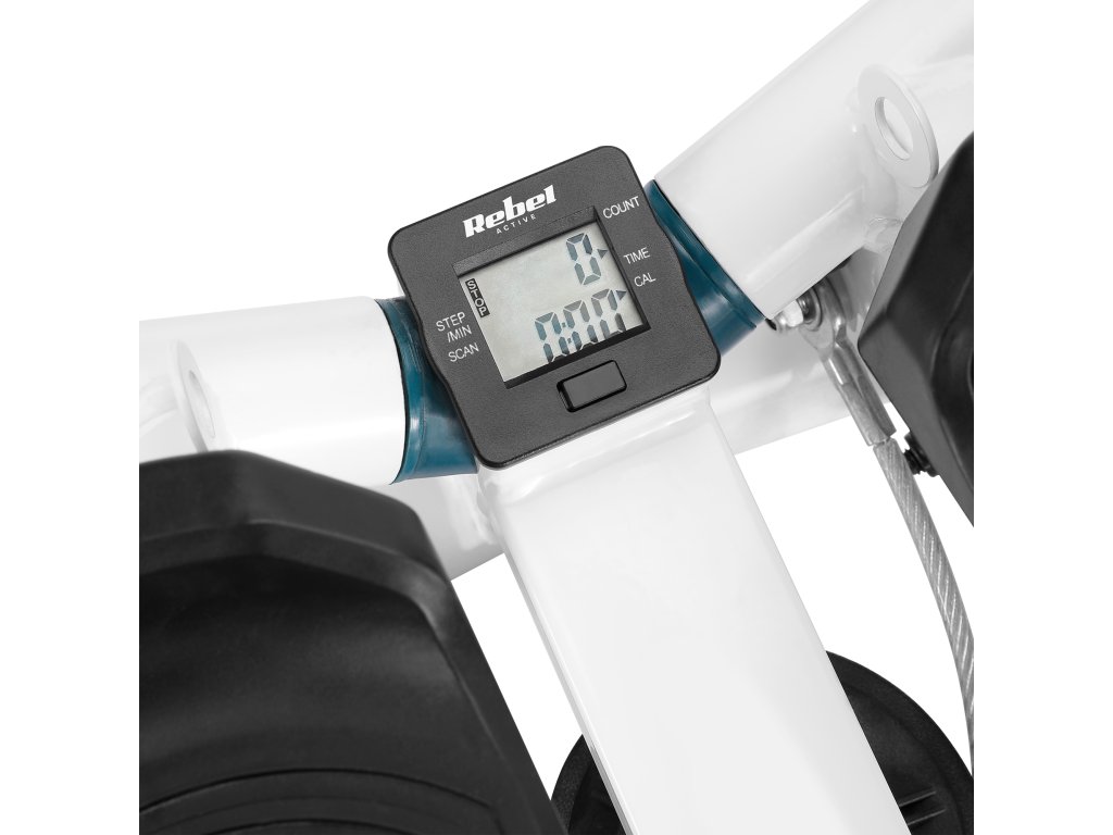 Spremljajte svoj napredek z vgrajenim LCD zaslonom, ki meri čas, število korakov na minuto, skupno število korakov in porabljene kalorije. Funkcija skeniranja omogoča udoben pregled vseh parametrov treninga.