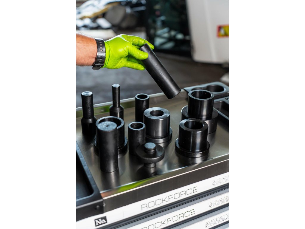 Parametri: •Maksimalni tlak: 75T •Kolesna hidravlična črpalka •Hidravlični valj s prečkami in zatiči - 1 kos (teža - 84 kg) •Vpenjalke - 9 kosov •Teža kompleta: 117 kg