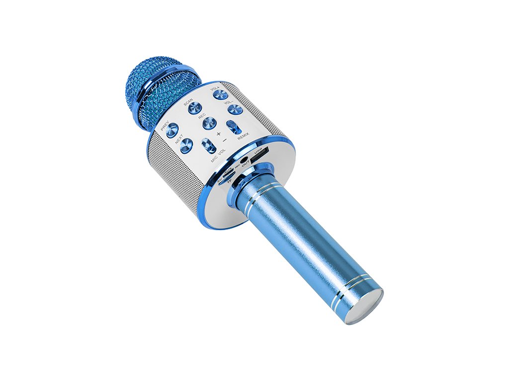 - Ergonomska zasnova: Moder Mikrofon za Karaoke za Otroke je zasnovan ob upoštevanju potreb najmlajših uporabnikov. Ima lahko in trpežno konstrukcijo, ki se zlahka prilega otroškim rokam.