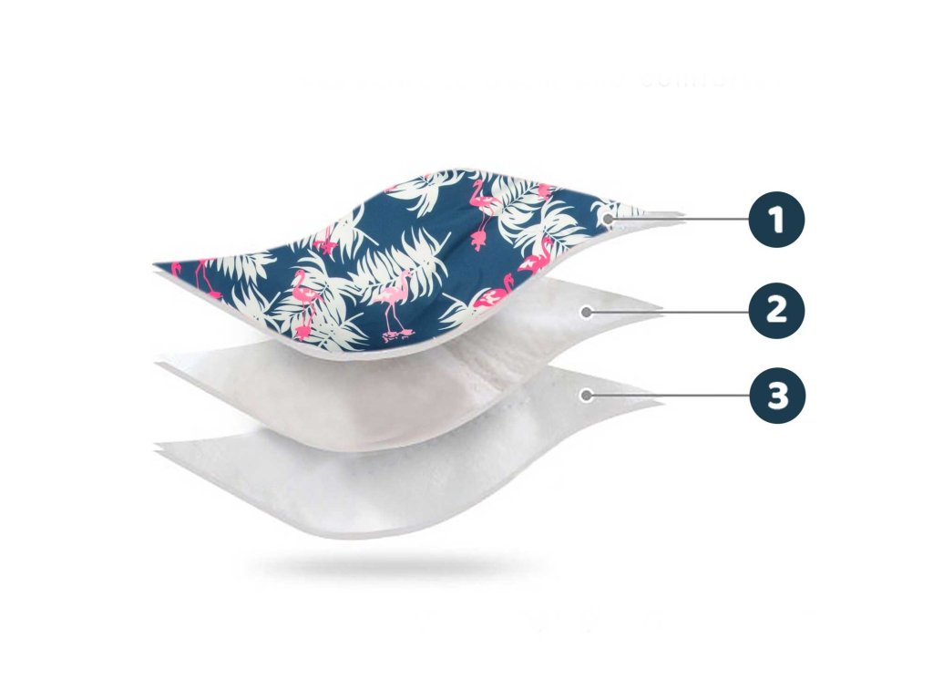 - Srednji sloj je napolnjen s toplim puhastim materialom, ki je alergenski.