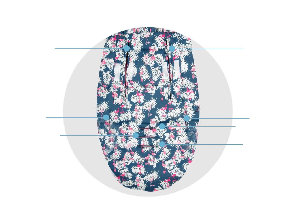 - pritrdilni element, ki preprečuje zdrs spalne vreče v vozičku,