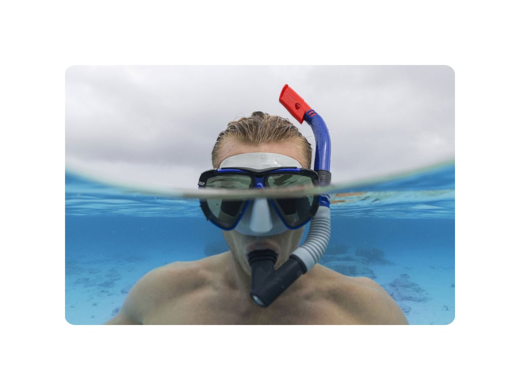Zdaj se lahko potapljate in uživate v vodnih zabavah do sitega! Maska zagotavlja širok kot pogleda, tako da ne boste ničesar zamudili iz podvodnega sveta! Poleg tega se odlično prilagaja obliki obraza, kar preprečuje vdor vode.
