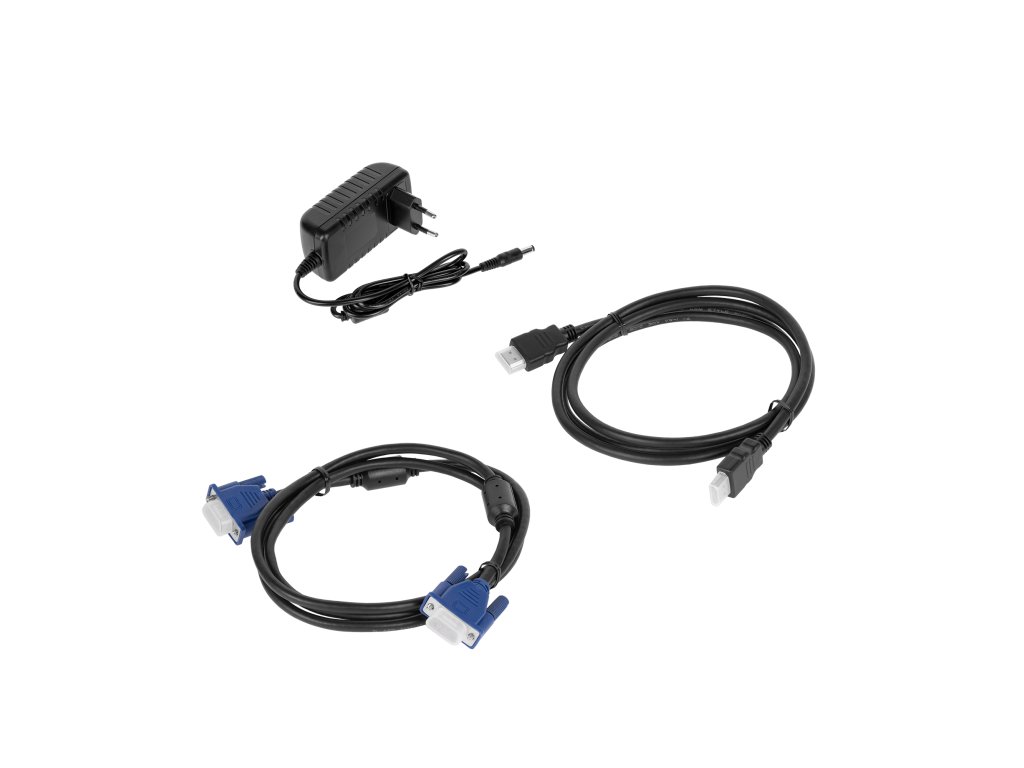 Napajalnik (145 cm), uporabniški priročnik, HDMI kabel (150 cm), VGA kabel (150 cm)