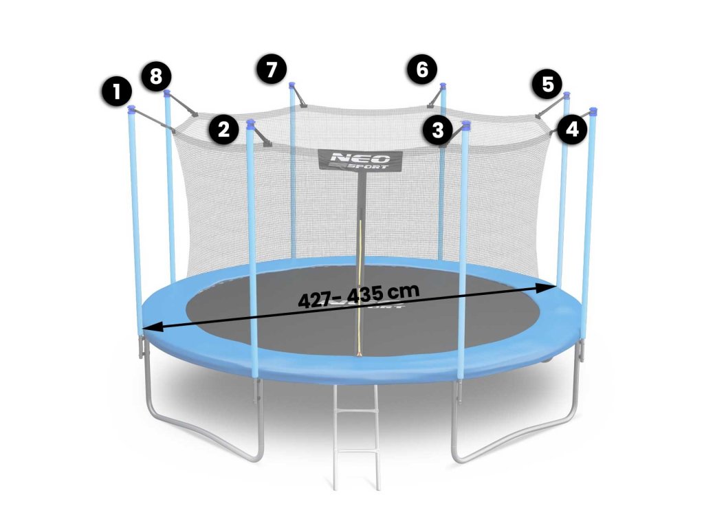 - namen za trampolin: 435/427 cm - 14 čevljev, za 8 stebrov
