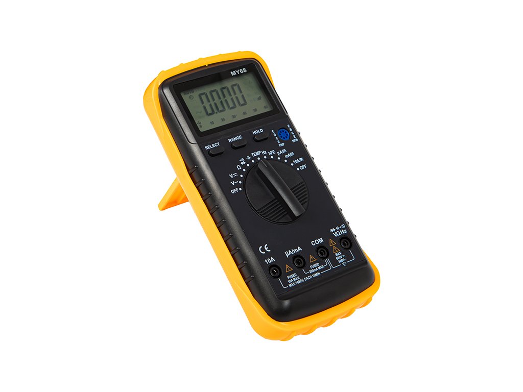 V etui vgrajeno plastično stojalo omogoča nastavitev naprave na uporabniku prijazen način, brez potrebe po stalnem držanju merilnika v roki - to bo bistveno olajšalo različna ročna dela, odčitavanje rezultatov pa bo omogočil izjemno berljiv in jasen LCD zaslon. Poleg tega, odstranljiva gumijasta zaščita ščiti napravo pred mehanskimi poškodbami in hkrati varuje uporabnika pred električnimi udarci.