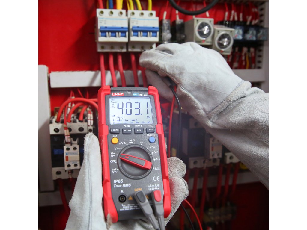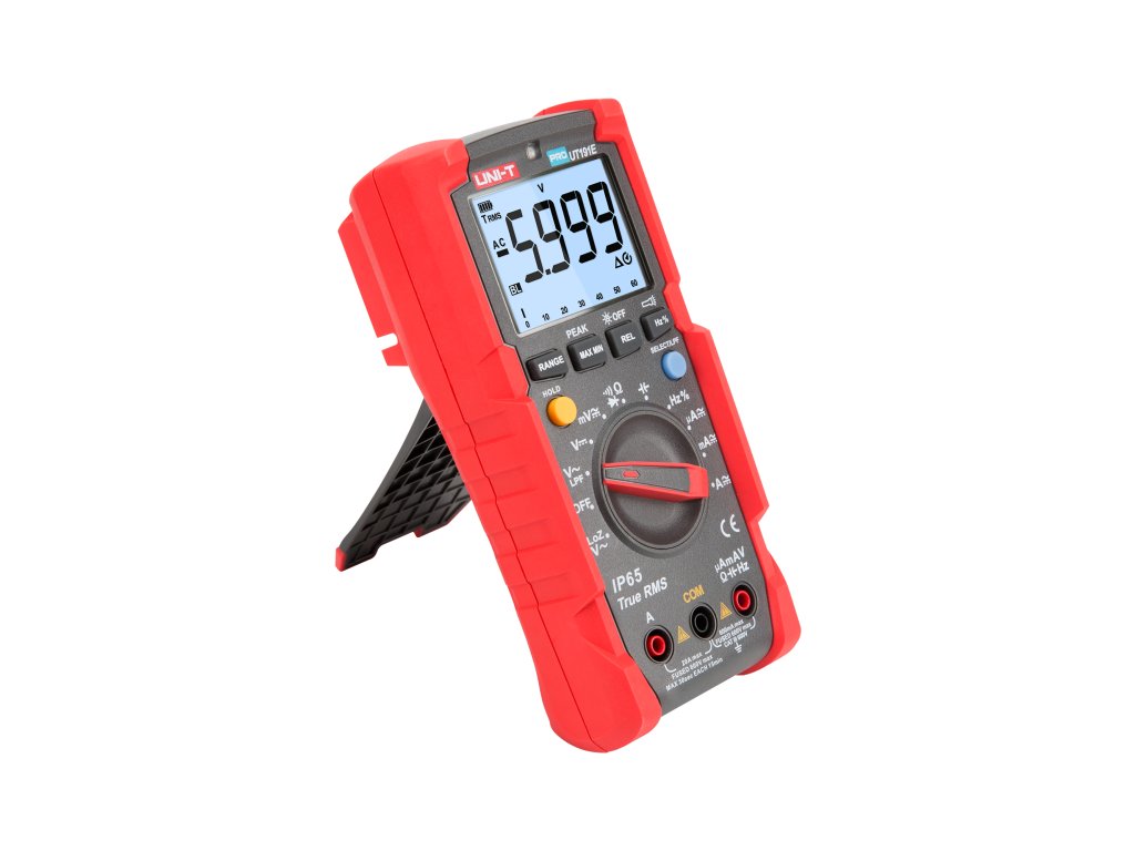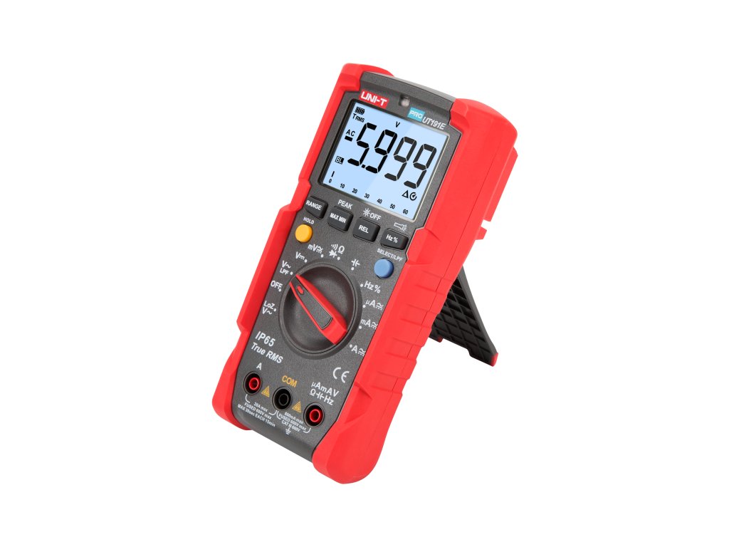 Merilnik Uni-T PRO UT191E je trdna naprava kompaktnih dimenzij (180 x 87 x 59 mm) in majhne teže 428 g. Opremljen z osvetljenim LCD zaslonom in svetilko omogoča delo v težkih svetlobnih pogojih. Samodejni izklop in indikator nizke ravni baterije skrbita za dolgotrajno uporabo naprave, v kompletu pa so vsa potrebna dodatna oprema, vključno z 9 V baterijo, merilnimi kabli in etuijem.