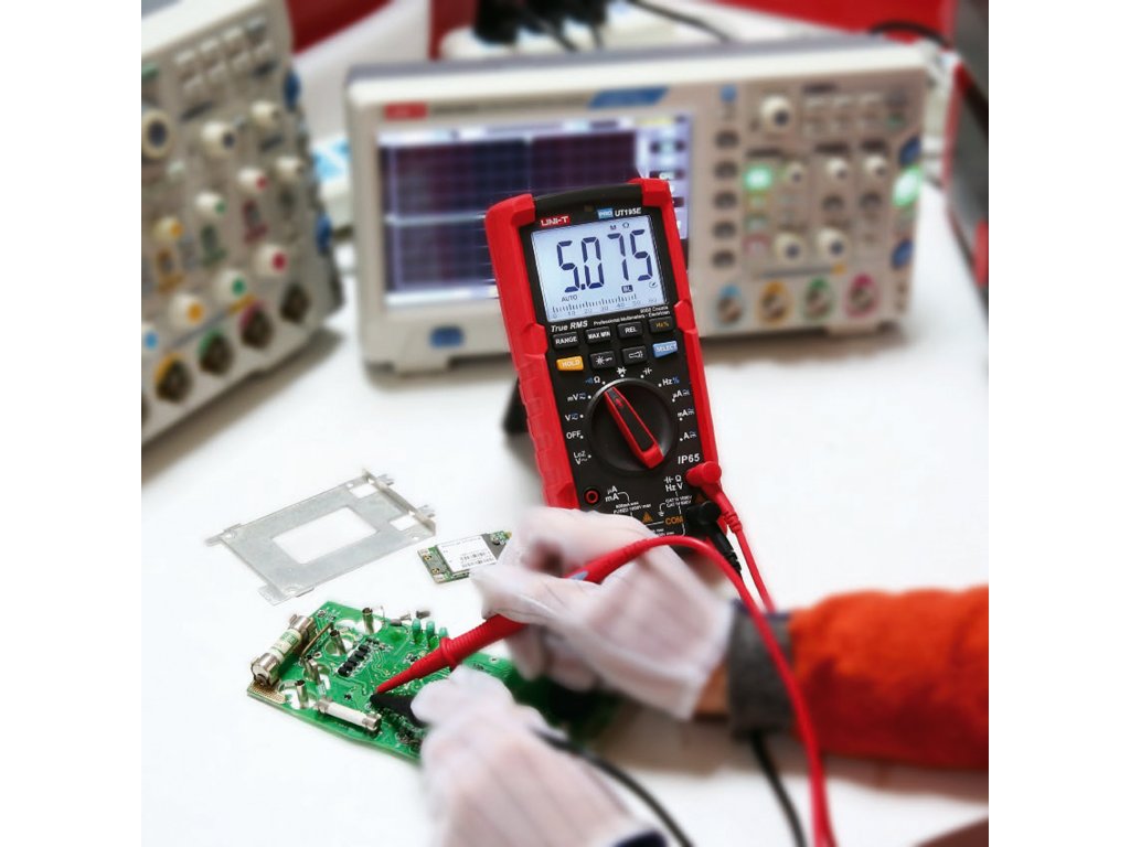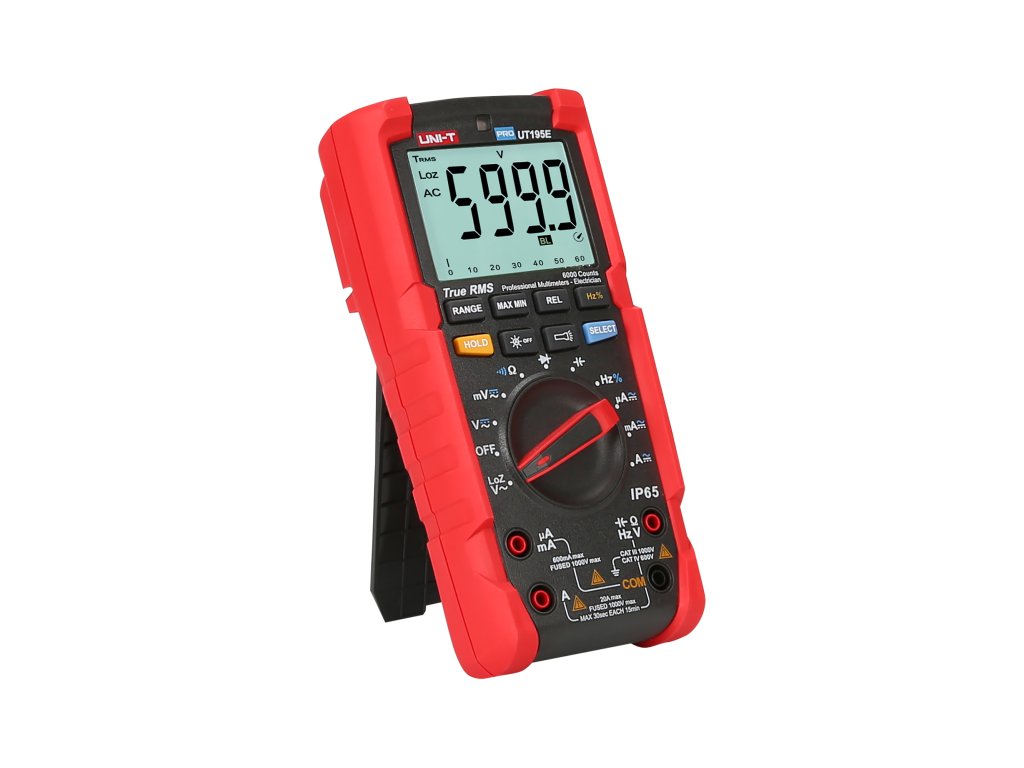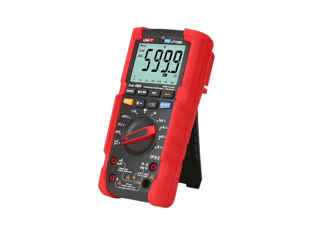 Merilna naprava UNI-T Uni-T UT195E je med univerzalnimi merilnimi napravami, ki omogočajo merjenje osnovnih električnih veličin, tj. enosmerne ali izmenične napetosti, enosmernega ali izmeničnega toka ter upornosti. Poleg tega model omogoča preverjanje neprekinjenosti vezja, testiranje diod ter merjenje kapacitete, frekvence in polnilnega faktorja.